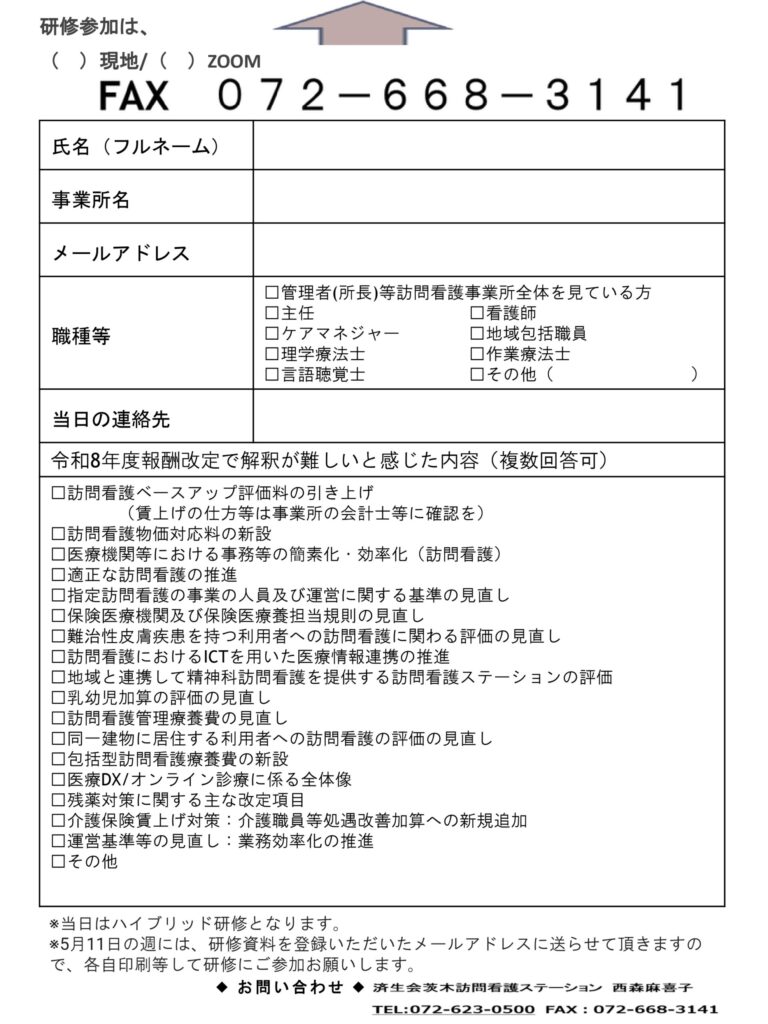 2026年度 大阪府訪問看護実践研修事業 教育ステーション事業のお知らせ
