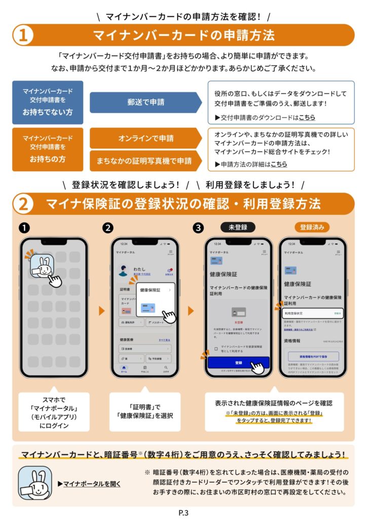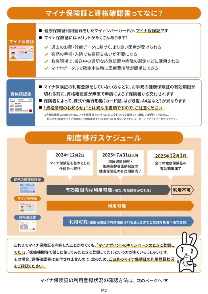 マイナ保険証をお持ちでない方でも、「資格確認書(しかくかくにんしょ)」を医療機関等に提示することで、これまで通り保険診療を受けることができます。